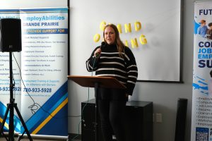 We were grateful to hear inspiring remarks from Lori Pollock (Chamber Chair), Mayor Kate Potter of Sexsmith, Brittany Oracheski (EmployAbilities Grande Prairie Supervisor), Maya Adomeit (FutureWorks Grande Prairie Supervisor), and Jason Loewer (EmployAbilities Executive Director), each speaking to the power of partnership and the importance of investing in people.